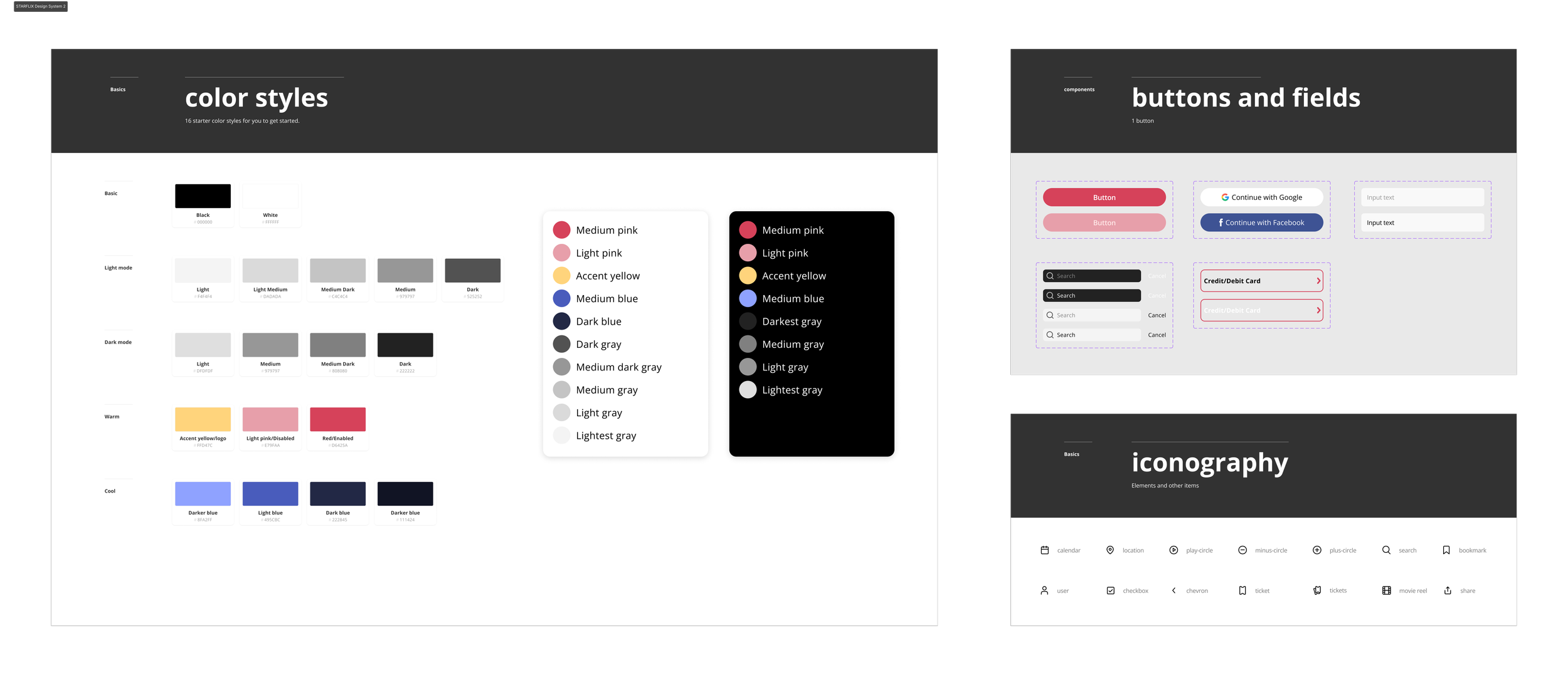I created a small design system to maintain a consistent brand identity using components, color, iconography, and more. Because this is a movie ticketing app, I knew it needed to draw the user's attention, be pleasing to the eye, and most importantly, help guide the user flow from start to finish.