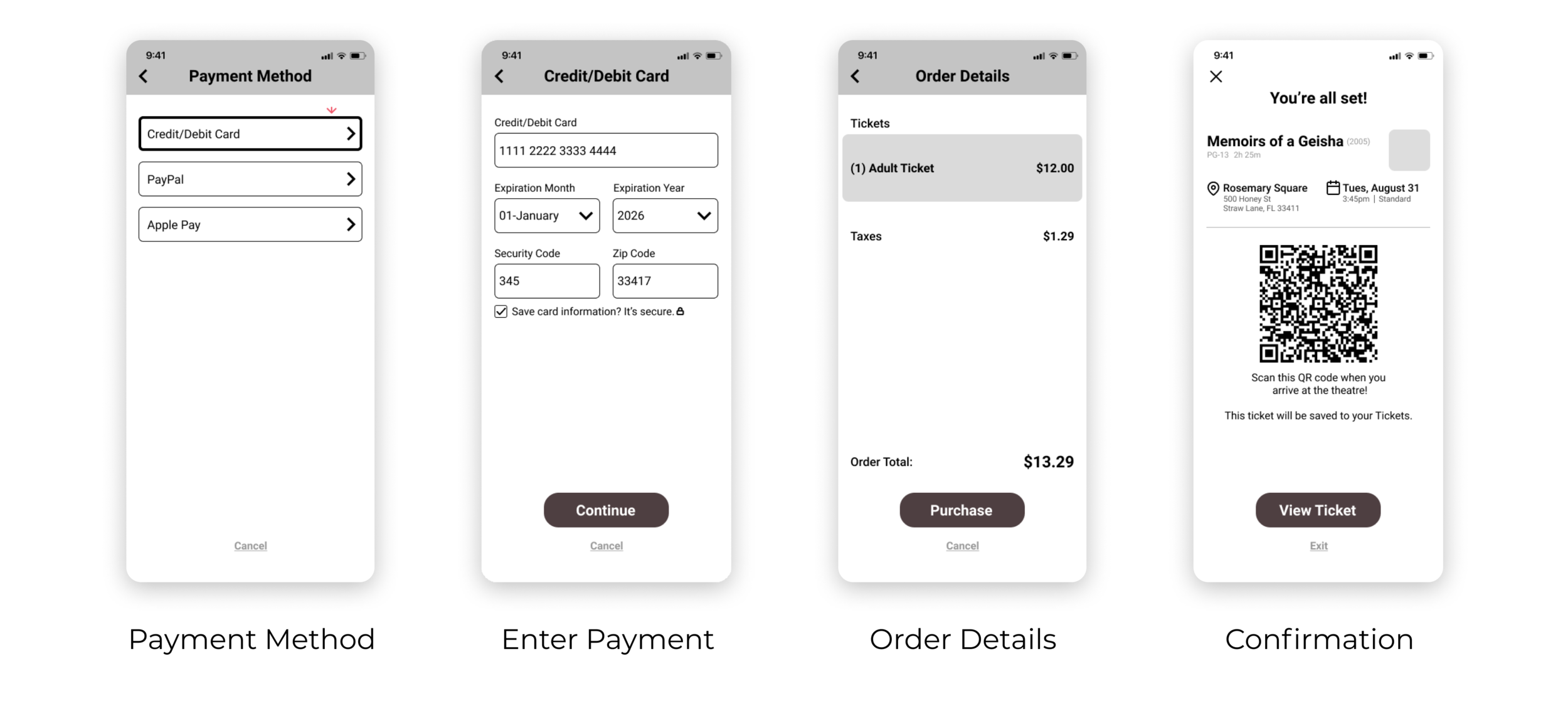 4. Users desire a visible confirmation and digital ticket that can be emailed to them or available in-app so that they can have a ticket ready to show when they arrive at the theatre